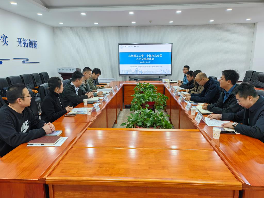 会议室召开座谈会。宁波市北仑区人才综合服务中心主任倪海翔、宁波市北仑区人才综合服务中心职员顾贤贵、宁波利德智能产业人才研究院部长林志君、宁波立研智能科技有限公司副总经理王美艳、无码影片