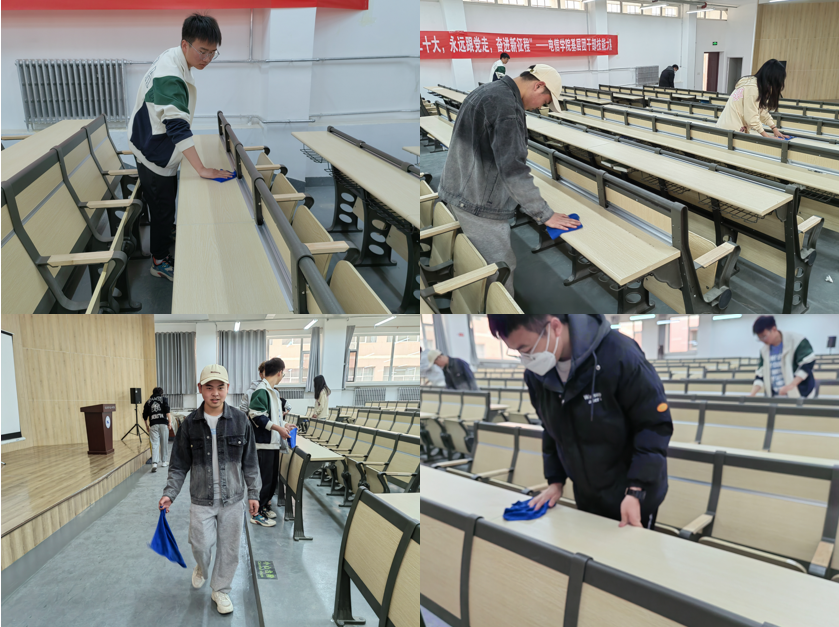 开展“践行二十大,‘寓’见劳动美”主题环保劳育教育活动。组织青年同学前往上课教室开展清扫卫生志愿服务活动。同学们积极认真的清扫教室卫生,他们用手中的抹布和拖把将所有的污垢一扫而空,整个教室焕然一新,给同学们留下了一个干净良好的学习环境和氛围。此次活动培养了同学们的公益服务意识和奉献精神。