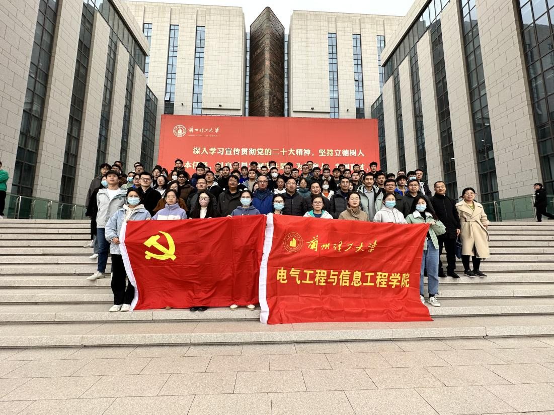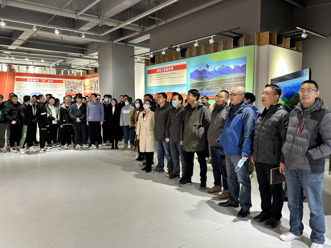领导班子成员、教师代表和学生党员代表一百四十余人,前往彭家坪校区问鼎堂,参观《奋进新时代》主题成就展甘肃单元图片展。