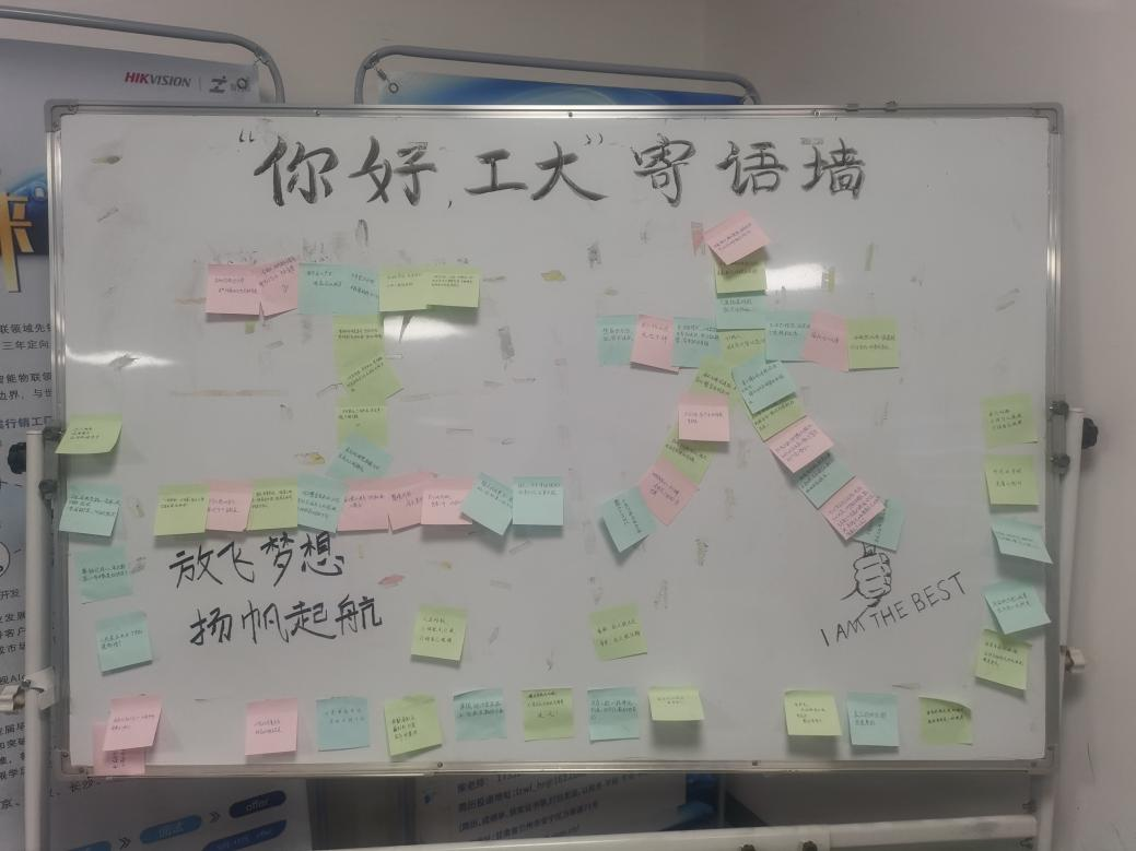 组织开展了“你好 工大”寄语活动。“奋进求是是前进的方向”,“学校的银杏林越来越美了”,“好好学习,锻炼身体,热爱生活。”,“423加油,我们是相亲相爱的一家人!”······一张张小小的便利贴,贴满了整个寄语墙。通过寄语的方式,同学们增强学习动力,明确奋斗目标,践行“艰苦奋斗 自强不息 求真务实 开拓创新”的红柳精神。