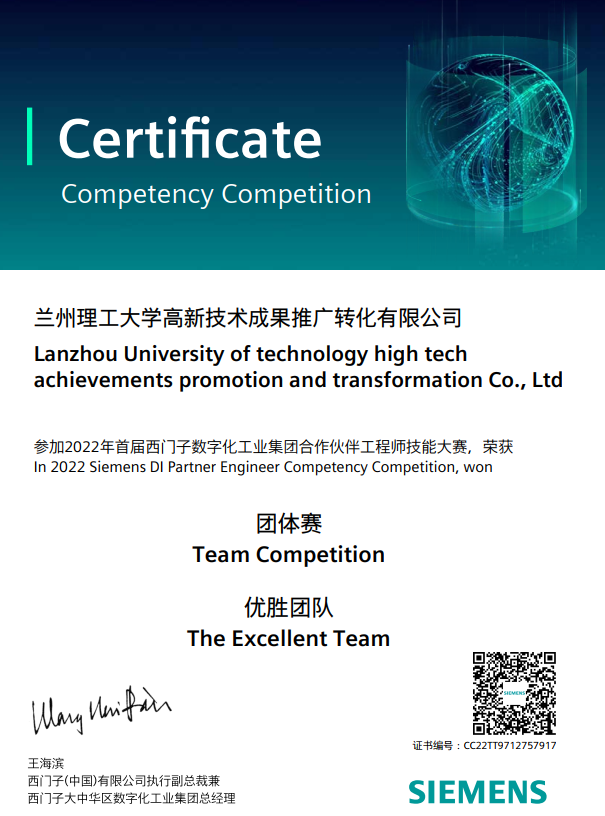 高新技术成果推广转化有限公司(西门子数字化工业集团授权的系统集成商)参赛,吴延明、刘朝荣和冯小林在西部赛区突出重围,代表西部地区参加了全国总决赛。在全国总决赛中冯小林老师在“工业数据互联”个人赛中获得全国第二名,由吴延明、刘朝荣和冯小林组成的代表队进入团体赛决赛12强,获得优胜团队奖。