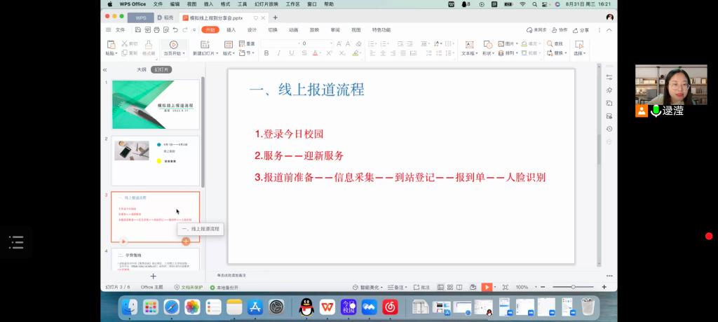 逯滢老师首先向大家讲解了新生线上报道的流程和新生缴费等内容,并通过实际演示向大家强调了线上报道的注意事项。随后李晓楠老师向新生逐一介绍了腾讯会议、钉钉课堂、QQ群课堂和超星学习通等线上学习平台的使用方法和操作流程,并结合自己线上授课的经验,向大家分享了线上学习的一些方法和学习经验。