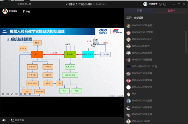 电子系教师、甘肃长风电子科技有限责任公司培训人员与18级电子毕业生在此次毕业实习中秉持了“停课不停教、停课不停学”的理念,顺利完成了线上实习。通过此次毕业实习,同学们了解了零件加工的基本工艺流程,树立了牢固的专业思想,激发了专业自豪感。