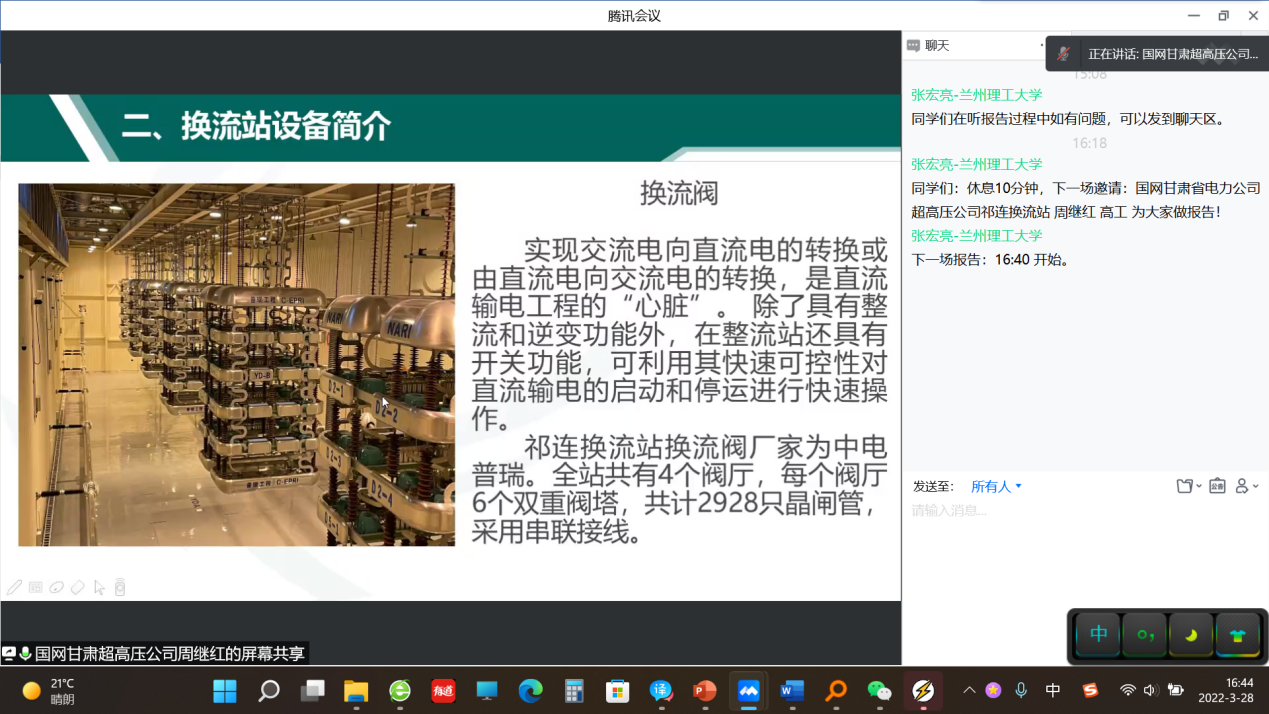 最后阶段,为提高本次线上毕业实习质量,增强毕业生对无码影片认识,丰富电气工程现场实践经验,特邀请了天水213电器集团有限公司人力资源部王旭明部长,国网甘肃省电力公司超高压公司祁连换流站二次检修班副班长、优秀校友周继宏高工分别做了“低压电器的发展和天水二一三的发展现状”、“特高压直流输电系统及其换流站核心设备介绍”的主题报告。低压电器是对电气设备控制、保护、检测、变换和调节的关键元件。在前期学习过程中学生对高压电气设备接触较多,而低压电器相关知识缺乏,通过“低压电器的发展和天水二一三的发展现状”报告不仅有效填补了学生对电力系统及相关领域的认知空白,同时也提升了对无码影片的认知深度。特高压直流输电技术是我国电气工程领域的高新技术,也是全球范围内的国家名片。通过“特高压直流输电系统及其换流站核心设备介绍”报告,不仅增加了学生的专业知识,丰富了工程现场经验,更增强了学生对我国科技力量的信心。(撰稿:杨维满;终审:王玲 )