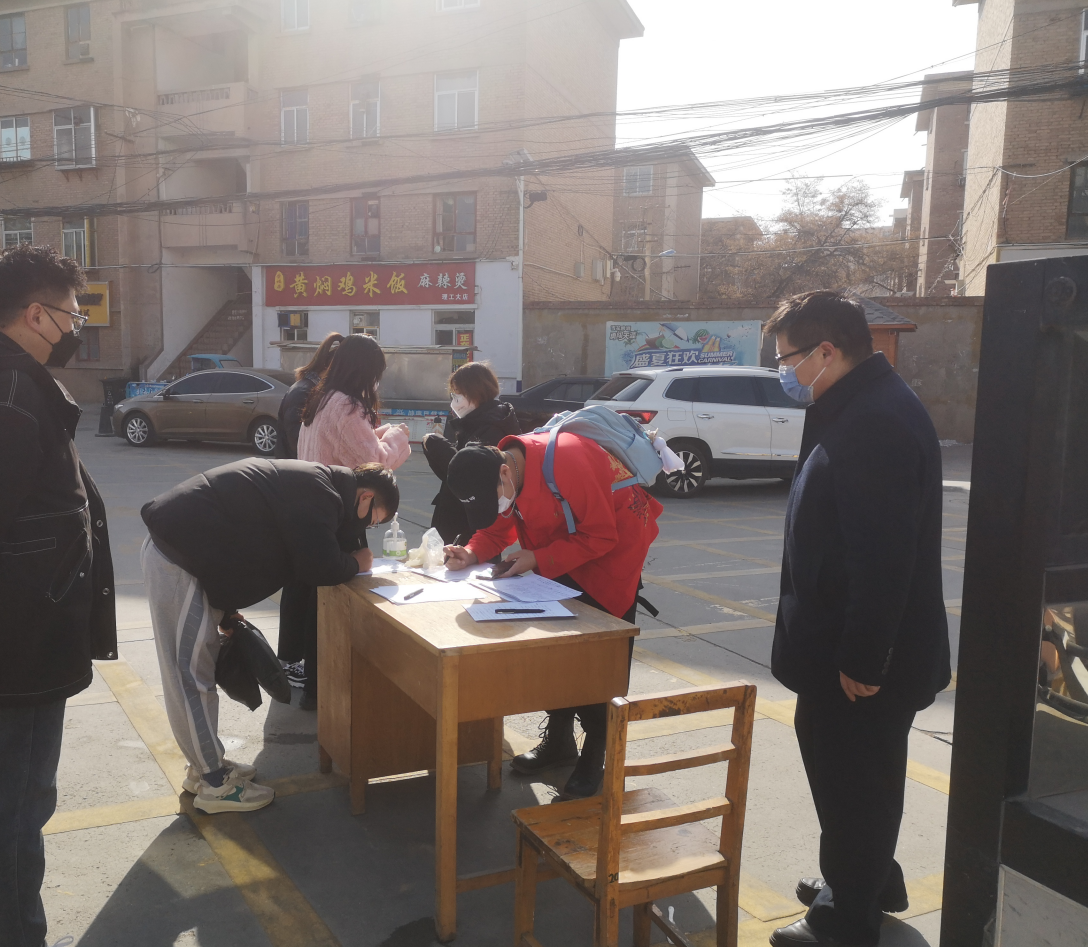 辅导员老师在彭家坪校区东门值班,查验返校学生健康码、行程卡及省外学生48小时内核酸检测阴性证明并做好入校登记,把好“无疫校园”入口关。