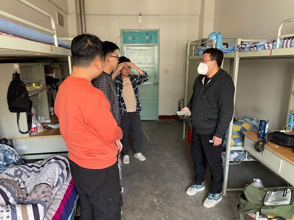 领导班子成员、辅导员深入学生宿舍,了解学生返校生活及开学准备情况, 对同学们关心和反馈的问题做出了解答,希望大家提高疫情防控意识,严格按照学校要求进行学习和各项工作, 努力营造健康安全的校园生活。(撰稿:李扬;终审:王玲)
