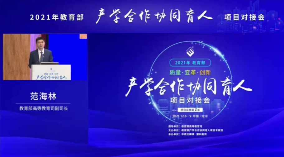 12月8日—9日,由教育部高等教育司指导,教育部产学合作协同育人项目专家组主办的“2021年教育部产学合作协同育人项目对接会”以线上线下相结合的方式在京召开,主题是“质量·变革·创新”,开幕式由教育部高等教育司理工处处长高东锋主持,教育部高等教育司副司长范海林发表致辞,教育部产学合作协同育人项目专家组组长、哈尔滨工业大学副校长兼威海校区校长徐晓飞教授做题为“质量先行 创新发展 奋力开创产学合作协同育人项目新局面”的主旨报告。会上发布了2021年度教育部产学合作协同育人项目优秀项目案例及《产学合作教育研究》内刊首刊。