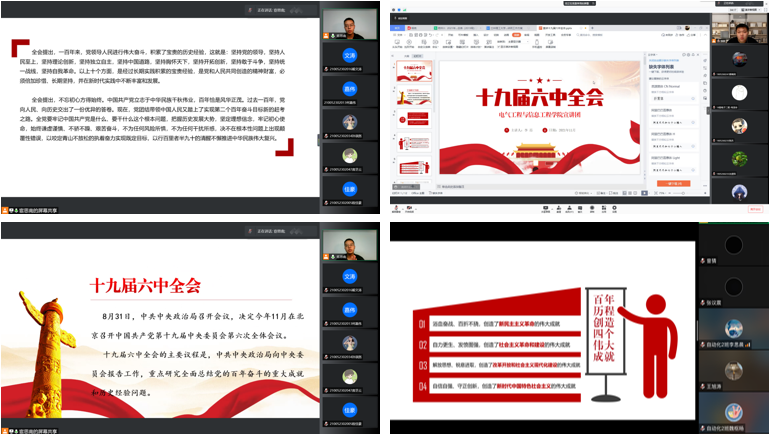 各党支部组织全体党员深入学习领会十九届六中全会的核心要义和实践要求,通过原原本本学、联系实际学,深刻理解“两个确立”对新时代党和国家事业发展、对推进中华民族伟大复兴历史进程的决定性意义;深刻理解“三次飞跃”的理论创新;深刻理解“四个时期”的重大成就;深刻理解“十个坚持”的宝贵经验。