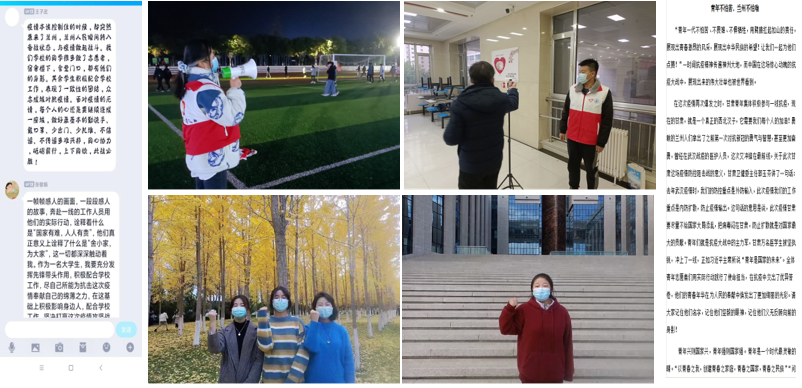 各党支部、团支部、班集体在此次疫情阻击战中发挥积极作用,充分发挥党团班一体化建设及协同作用,构建党团班协同育人机制,凝聚青年构建网络思政育人格局。各党、团支部积极行动,做到党有号召、团有行动,开展了“请党放心 抗疫有我”主题党、团日活动,依托网络平台,结合实际情况和特色,开展了主题鲜明、内容丰富、形式多样的线上活动。
