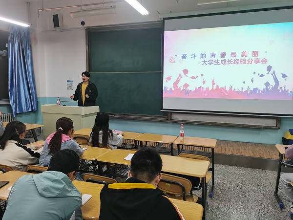 于励志楼举办了主题为“奋斗的青春最美丽”的大学生成长经验分享会。本次分享会活动邀请到了17级电子信息与科学技术专业的官腾和李静静同学,他们为20级的同学们讲述自己的专业学习、科研竞赛、出国交流、学生工作、保研经历,分享自己的学习经验。