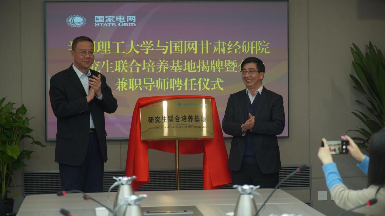 与国网甘肃省电力公司经济技术研究院研究生联合培养基地揭牌暨企业兼职导师聘任仪式1月20日在国网甘肃省电力公司经济技术研究院举行。