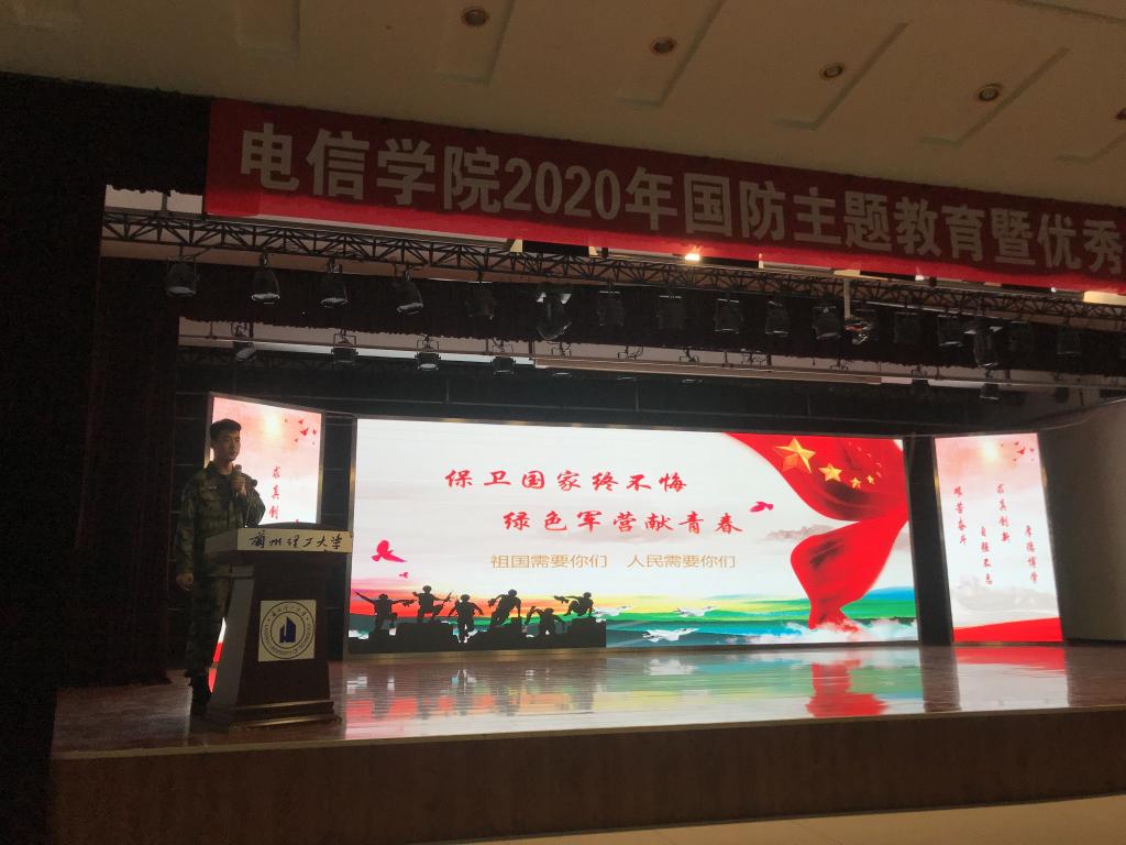 于彭家坪校区大学生活动中心顺利举办2020年国防主题教育暨优秀退伍大学生事迹宣讲会。学校学生学业发展指导与国防教育中心唐洪川主任,无码影片