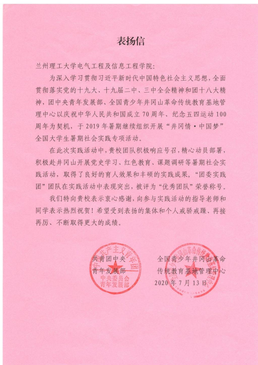 在2019年“井冈情·中国梦”全国大学生暑期社会实践专项活动的突出表现。