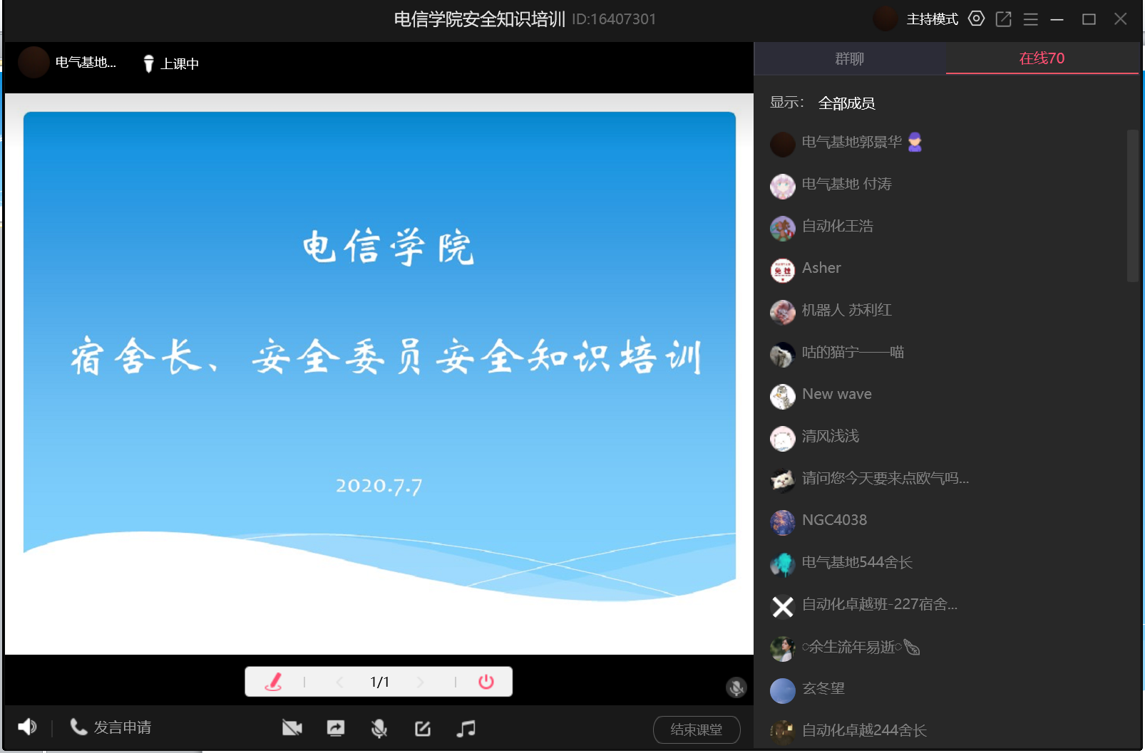 组织各班级学生通过线上方式,以宿舍为单位观看“应急安全大讲座”,并召开线上主题班会,向学生普及安全常识,宣讲典型安全事故、校园网贷、网络诈骗、校园霸凌等案例,并给出相应问题的预防、解决方法,主题班会结束后,同学们撰写学习心得,从思想深处树立安全意识。