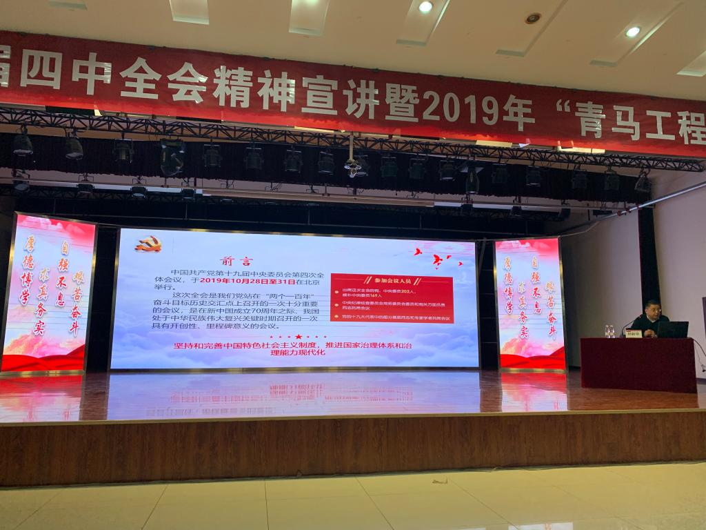 党委杨新华书记为全体参会人员作了“党的十九届四中全会精神”专题报告,从《决定》的起草过程、重大意义、主要内容等多个方面,为大家解读十九届四中全会精神。勉励同学们要珍惜青春年华,把握历史机遇,担负起历史责任,成为坚定中国特色社会主义道路自信、理论自信、制度自信、文化自信,自觉践行社会主义核心价值观,政治坚定、德才兼备、素质过硬、堪当重任的中国特色社会主义事业合格建设者和可靠接班人。