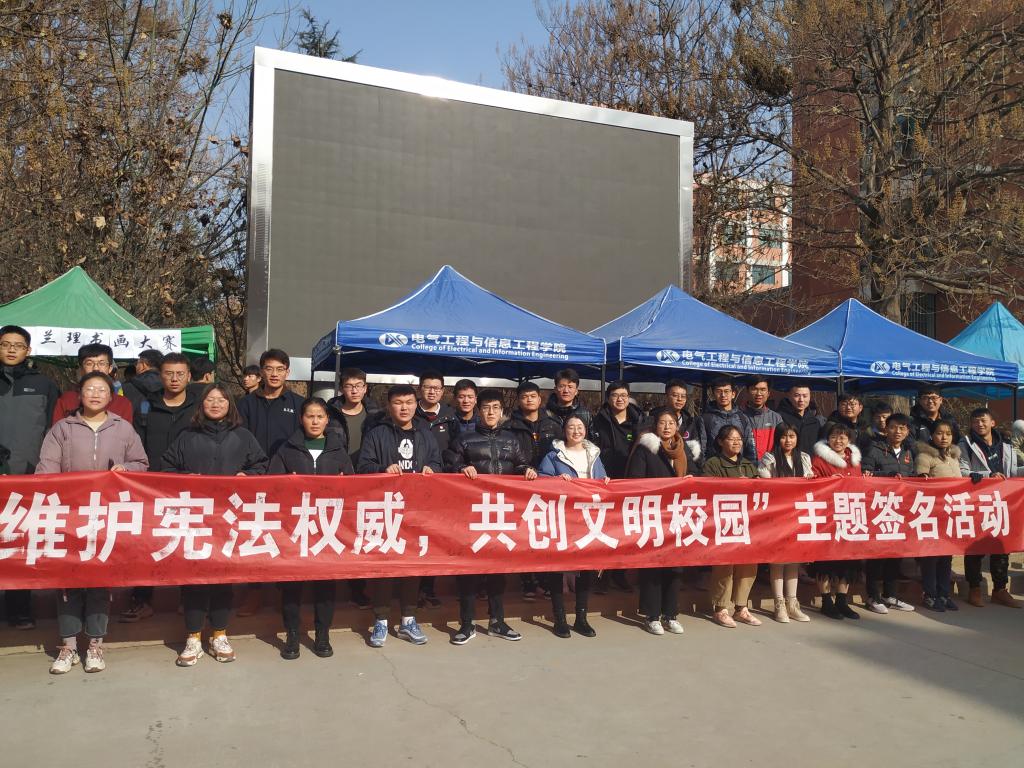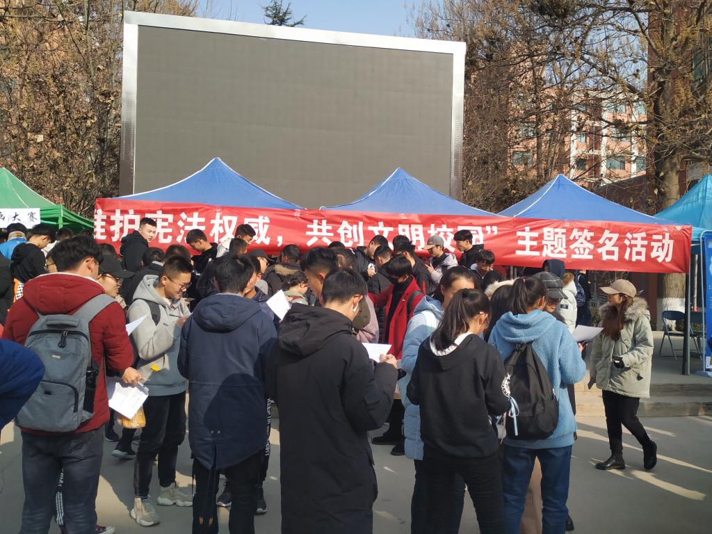 于彭家坪校区红柳广场举办“维护宪法权威,共创文明校园”主题签名活动。