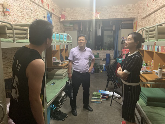 领导、老师逐一了解学生返乡留校情况,并叮嘱大家注意出行安全、严格遵守宿舍规章制度等安全事项。