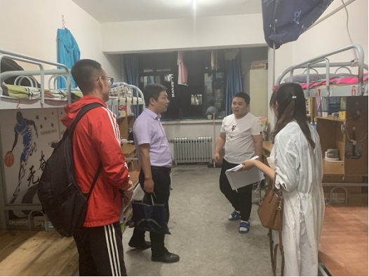 党委朱毓杰副书记、全体辅导员老师及班主任一起走访了学生宿舍。
