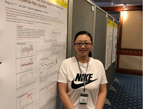 particle filter algorithm的海报报告,与与会学者就活性污泥过程中的故障诊断技术等问题展开讨论与交流。