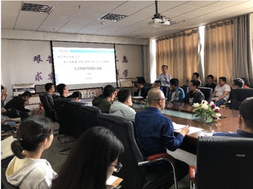 教师及研究生共50余人参加了报告会。沈沛意教授做了题为“人工智能与机器人”的学术报告。沈教授首先分享了研究生应该如何学习及做科研的经验,强调了研究生应该养成随时做笔记的良好学习习惯。然后,沈教授播放了世界顶尖机器人公司(Boston Dynamics,波士顿动力)的最新机器人产品的相关视频,让参会师生对目前机器人的发展现状及前沿有了了解,从而引入人工智能与机器人的报告主题。报告中,沈沛意教授对机器视觉、卷积神经网络、人工智能三者的区别,机器人的发展现状及带给我们的变化等方面做了详细介绍,并展示了其所在的嵌入式技术与视觉处理研究中心的部分科研成果。报告结束后,沈教授与师生进行了关于网络的可解释性、目标检测的速度与精度如何权衡及卷积神经网络中的一些问题进行了讨论及交流。学术报告及交流会持续两个小时,师生们一致表示收获颇多。
