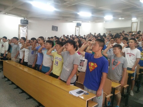 在随后的诚信教育环节,辅导员老师重申了考试纪律,宣读了作弊情况处理办法等法规文件,就考试违纪和作弊情况的认定和处理向同学们做了详细的讲解。今年是考试作弊纳入刑法的第一年,希望同学们诚信应考,考出真实水平。最后,全体同学举行了诚信考试宣誓。 |