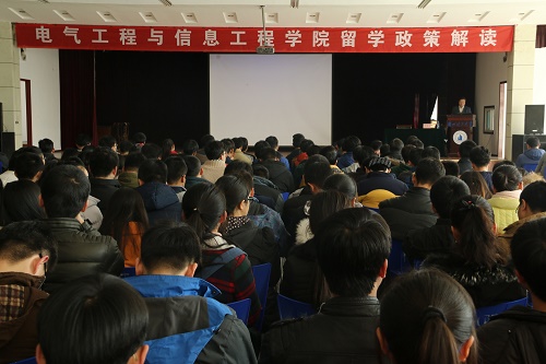 党委杨雅琼副书记主持。2014级、2015级班主任、辅导员以及2013级学生参加。       黎锁平处长通过数据分析了全球留学生人数持续增长、中国留学生人数占比极高、多国对华签证放宽、留学逐步进入高质量时代的出国留学的发展趋势,并结合学校2011年获中国政府奖学金招生资格、2012年加入“上海合作组织大学”(USCO)、2012年设立“2+2”项目国际班、2015年加入“一带一路”高校战略联盟(B&RSAU)等方面的工作成绩,为同学们讲述了“什么是国际化办学理念”以及在现有条件下大学生该如何进行留学选择。通过介绍,大家对申请留学的程序、要求,以及与学校有合作关系的国外高校的基本情况有了具体了解和认识。黎处长幽默生动的语言,也获得了大家阵阵掌声。       最后,杨雅琼副书记从大学生就业前景、个人发展为出发点,鼓励大家在不同的人文环境和学术氛围中升华自己,提升自己的就业质量和发展前景。 |