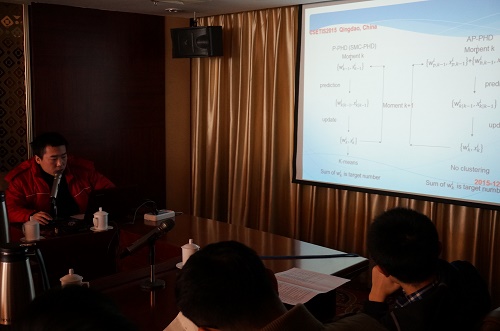 叶平在演讲       2015年12月27日,由国际信息化与工程技术协会(International association of information and engineering technology)主办的第五届信息技术与应用国际会议在中国青岛成功举办。来自北京科技大学,南京航空航天大学以及来自日本奈良先端科学技术大学等高校的专家及师生代表参与了本次大会。       信息技术与应用国际会议旨在为信息技术、信号处理、自动化及计算机等领域内的专家和学者们提供一个国际交流平台,每年主办方都会邀请国内外知名专家到会做相关领域的主题报告。本次会议主席为印度国立技术大学的Prof. K. Chanda Sekran,并邀请了加拿大怀雅逊大学的Prof. Krishna Dev Kumar及美国南伊利诺伊大学Prof. Yun Wang等多位国际知名专家组成学术委员会。此次会议的报告涵盖了机器人技术、人脸识别、太空探索、目标跟踪等前沿科技领域,到会的专家学者们就以上几大领域进行了充分交流和学术研讨。其中我校学生叶平在会议期间做了题为‘Rao-Blackwellized Free Clustering Particle PHD Filter For Multi-Target Tracking’的学术报告,与其他学校的师生们交流了自己在多目标跟踪领域的最新研究成果。       目前信息技术与应用国际会议成功举办了五届,已成为国际信息化技术领域的高水平学术会议之一。此次会议全面总结和交流了信息技术领域的最新研究成果,同时对该领域的科研前沿进行专题研讨,并展望其发展方向,为该领域专家、学者和高校师生探讨新思想、交流新技术、展示新成果提供一个良好的平台。  |
