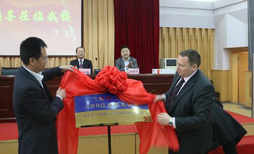 -ABB自动化实验室签约揭牌仪式在我校逸夫馆科技二楼报告厅隆重举行。校党委书记李贵富与ABB集团机械控制及自动化产品管理中心运动控制及PLC自动化亚洲区销售经理兼传动与控制本地业务单元机械控制及自动化产品管理中心经理James Large先生共同为实验室揭牌。