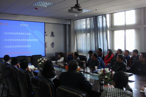 教职工以及相关方向的研究生共60余人参加了报告会。 党建武教授和马义德教授分别做了“重离子放疗计划系统中的医学图像处理”和“智能数字图像技术”的主题报告。马义德教授主要针对自己以及团队的研究方向,以目前图像处理中的一些热点问题和话题为引子,介绍了视皮层神经网络的发展历程、视皮层神经网络的模型和信息处理方法、在数字图像处理中的应用以及未来的发展方向。党建武教授以自己团队所完成的一个项目为例,介绍了重离子放疗计划系统的背景、意义和发展前景、介绍了医学图像的分割、医学图像的三维绘制、重离子放疗计划系统中的一些关键技术和所开展的工作。