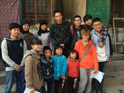 志愿者与留守儿童合影留念