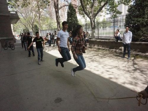 此次活动设立的项目有:集体项目5项(两人三足接力赛;托兵乓球接力赛;背对背夹气球;趣味跳大绳;袋鼠跳)和个人项目3项(踢毽子;跳绳;单人自行车比慢)。
