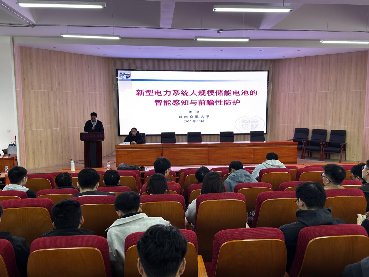 他从“双碳”目标切入,生动阐释了新型电力系统的构建意义及智慧能源的关键作用,结合实际案例展示储能电池在新能源汽车、电网调峰等场景的应用。陈教授还分享了个人从求学到科研的成长经历,鼓励同学们夯实数理基础、关注行业前沿、积极参与科研实践。