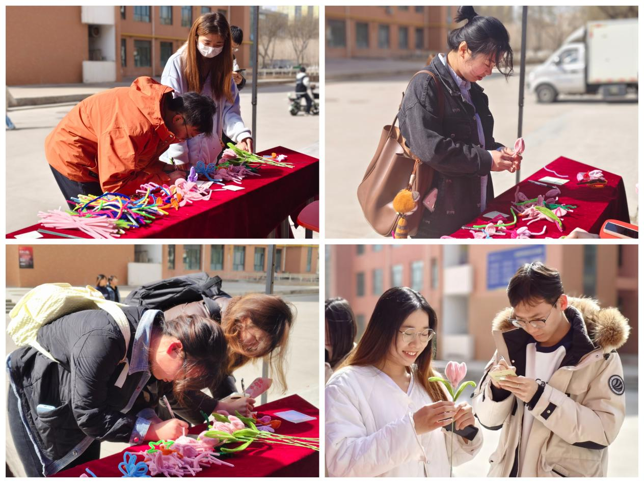 面向全体女性学生骨干,在一站式学生社区举办“芳华绽放”关爱活动。活动现场设置“双视角创作”环节,男生组构思创意造型、女生组精雕花瓣细节,协作完成花艺作品,培养团队精神。志愿者们将20朵立体郁金香制成“心愿盲盒”祝福卡,点缀于教学楼、无码影片