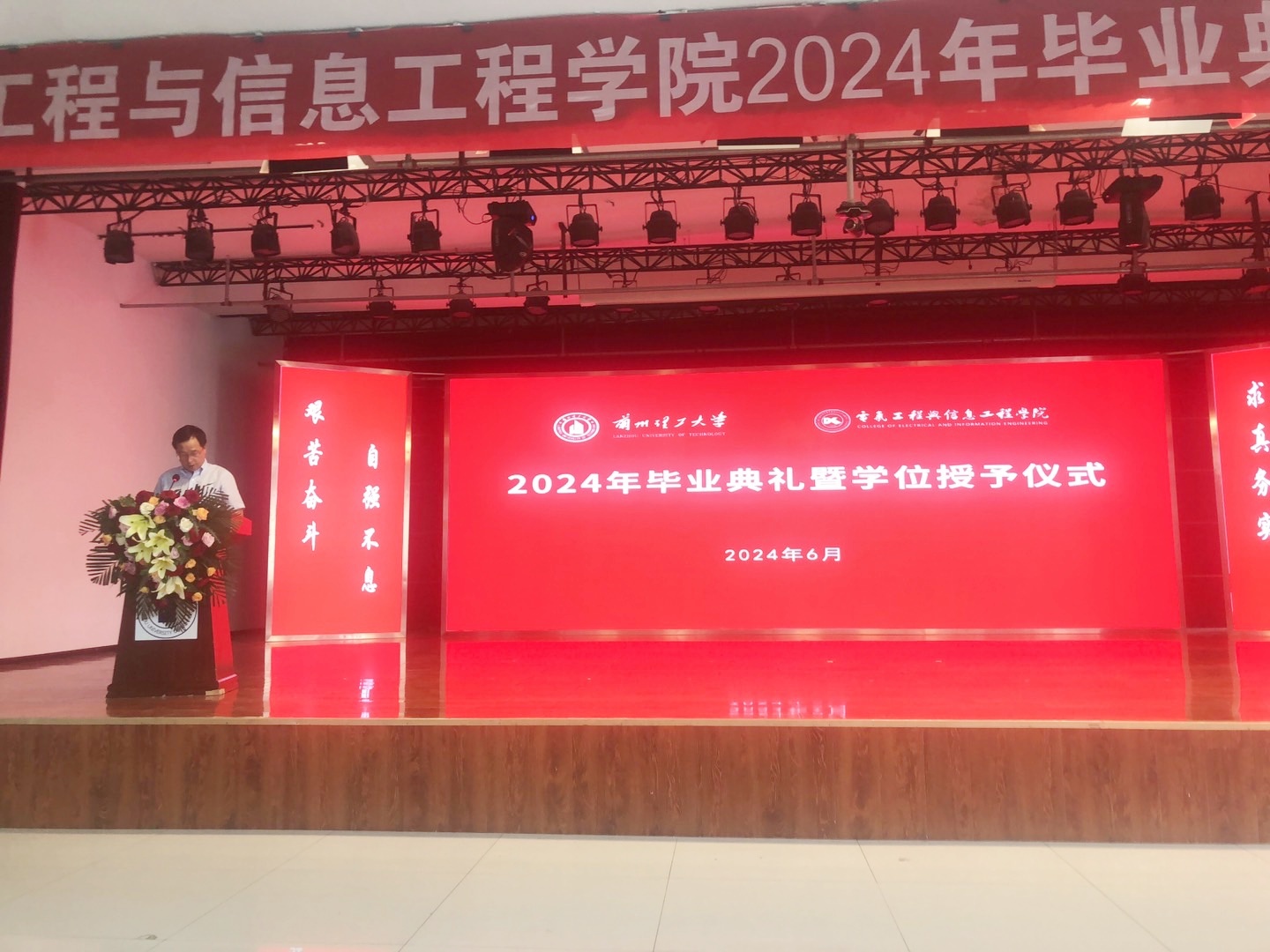 典礼上,2024届博士毕业生代表牟淼、本科毕业生代表汤奕波代表全体毕业生做了发言。“四年时光,紧张而充实,有担心高数挂科的窘迫,有服务同学手忙脚乱的充实,有挑灯熬夜撰写课程论文的痛苦。这一切都在激发我不断突破局限,不断走出舒适区并快速成长。”他们诚挚地表达了对母校的怀念与珍惜,并号召全体毕业生们继续发扬“艰苦奋斗、自强不息、求真务实、开拓创新”的红柳精神,在融入“大我”中成就“小我”,在贡献国家中实现人生价值。2023级邴嘉垚同学代表全体在校学生对2024届毕业生表达了感谢并送上毕业祝福,祝愿所有2024届毕业生用自己的实际行动为祖国的发展进步贡献青春和力量,祝愿所有的2024届毕业生们一帆风顺、鹏程万里!
