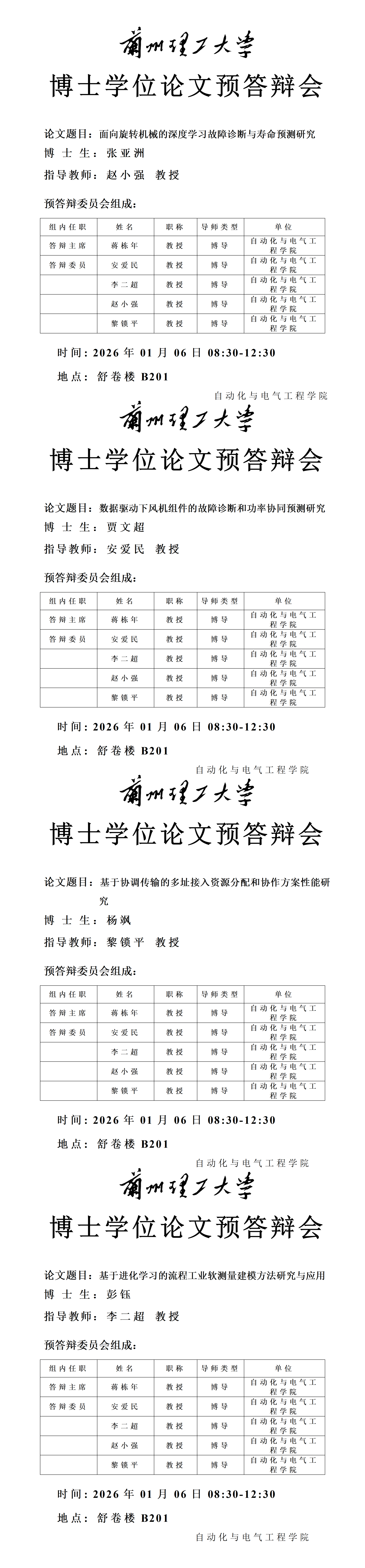 2025秋季学期无码影片 博士学位论文预答辩公告
